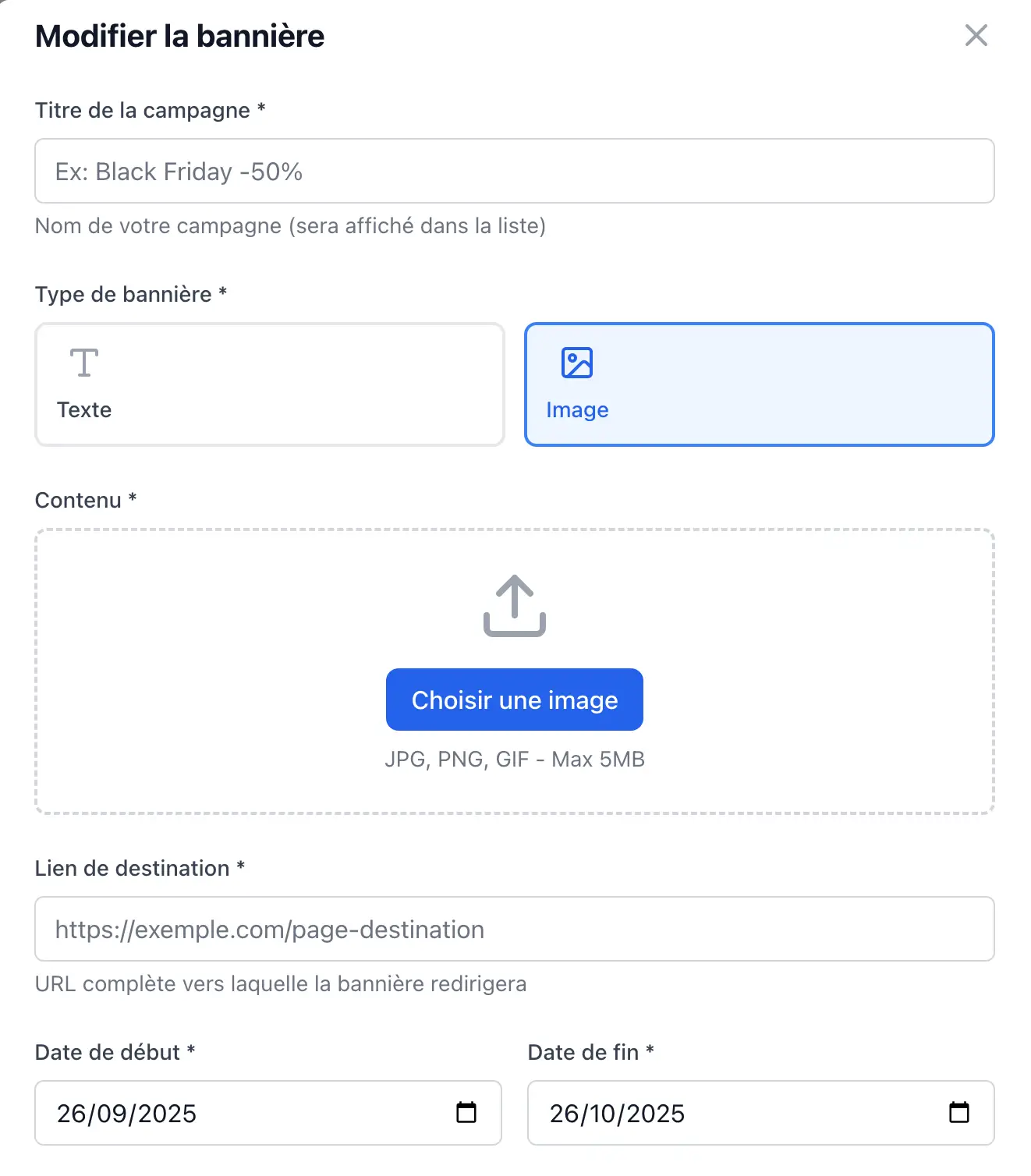 Ajoutez facilement un bandeau promo ou informatif (Noël, Black Friday, lancement produit…) et mettez vos emails au service de votre communication.